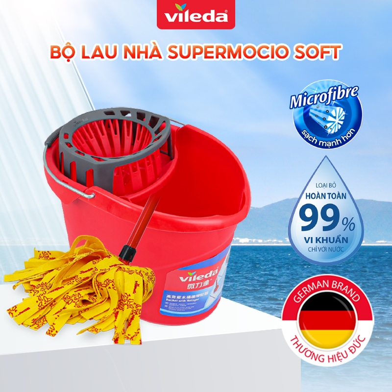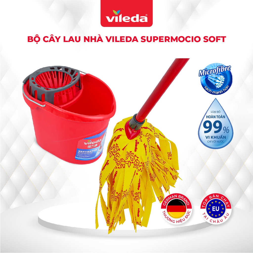 - Thương hiệu: Vileda - Xuất sứ thương hiệu: Đức - Chất liệu: Supermocio Soft vải sợi siêu nhỏ, nhựa Cây lau nhà VILEDA Supermocio Soft vải sợi siêu nhỏ, siêu thấm dùng cho sàn