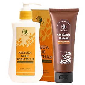 Bộ sản phẩm bao gồm: 1 Sữa rửa mặt hữu cơ 70g + 1 Kem sữa nghệ dưỡng trắng body 180g.