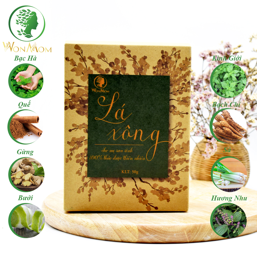 - Lá Xông Tắm Toàn Thân Thảo Dược 1 Lần Dùng Cho Mẹ Sau Sinh Wonmom Gói 50Gr Giúp Xông Hơi Thải Độc - Hồi Phục Sức Khỏe - Tránh Trầm Cảm Sau Sinh -