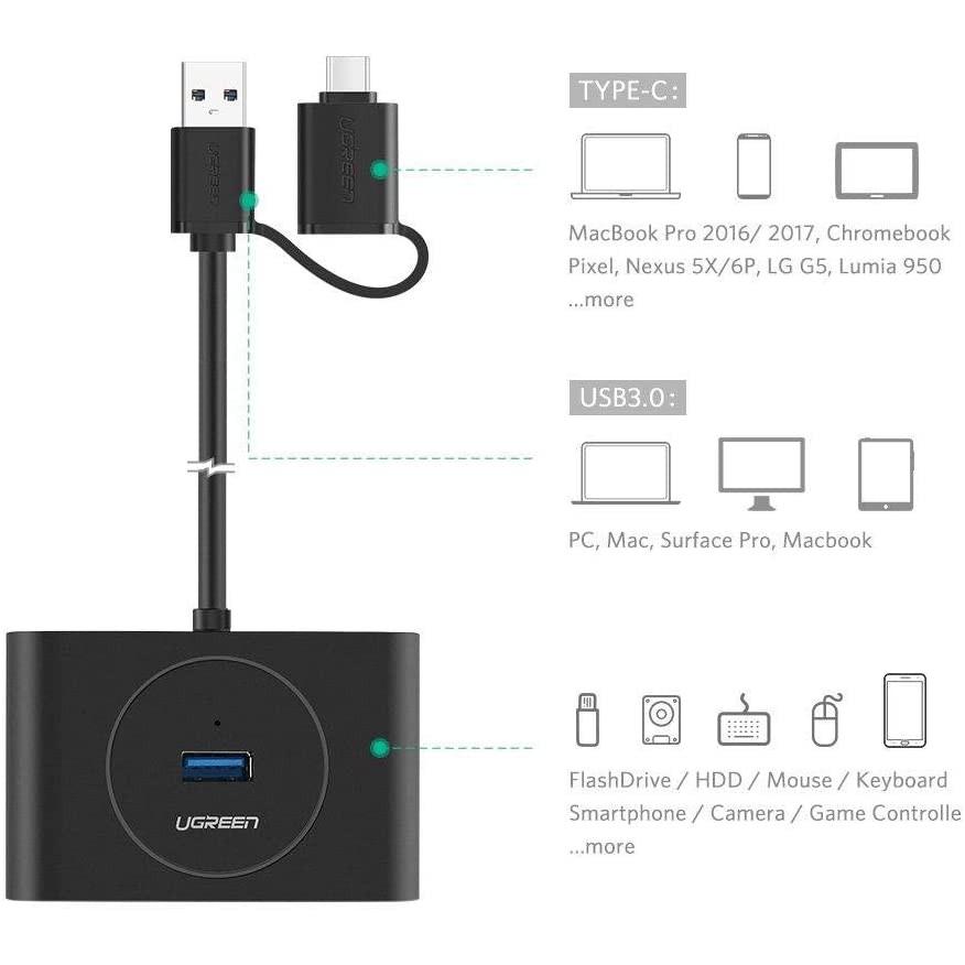 ✨Bộ chia cổng USB 3.0 / USB type C sang 4 cổng USB 3.0 dài 1m UGREEN 40850 - Hàng chính hãng