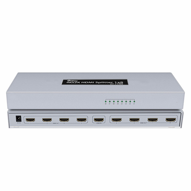 Bộ chia HDMI 1 ra 8 DTECH DT-7148B HDMI Splitter 1 ra 8 cho phép chia một nguồn HDMI ra hai nguồn HDMI, làm tăng khả năng kết nối và chia sẻ hình ảnh, âm thanh