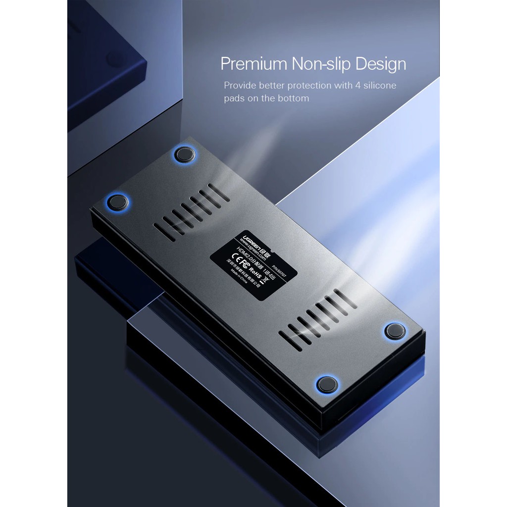 - Bộ Chia HDMI Ugreen Ra 4 Cổng HDMI 40202 được thiết kế vỏ kim loại cao cấp, cảm giác cầm trên tay chắc chắn. - Ugreen 40202 chia từ 1 cổng HDMI ra 4