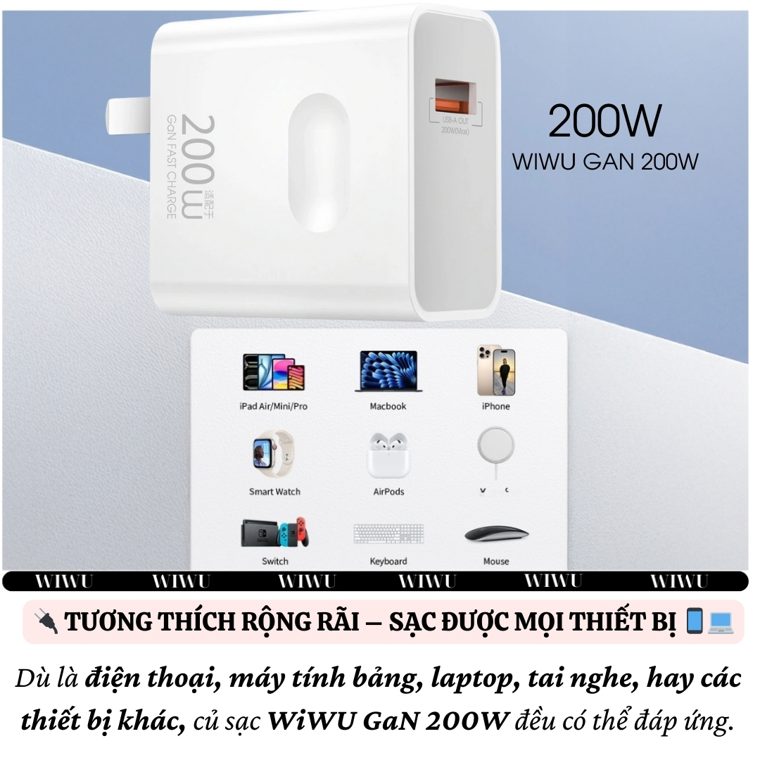 WiWU Wi-G003 Essen GaN Charger 200W – Công Suất Siêu Khủng, Sạc Nhanh Đa Thiết Bị! Sạc nhanh – Công suất mạnh mẽ – Thiết kế nhỏ gọn! Tính Năng Nổi Bật: Công suất 200W siêu mạnh – Sạc đồng thời nh...