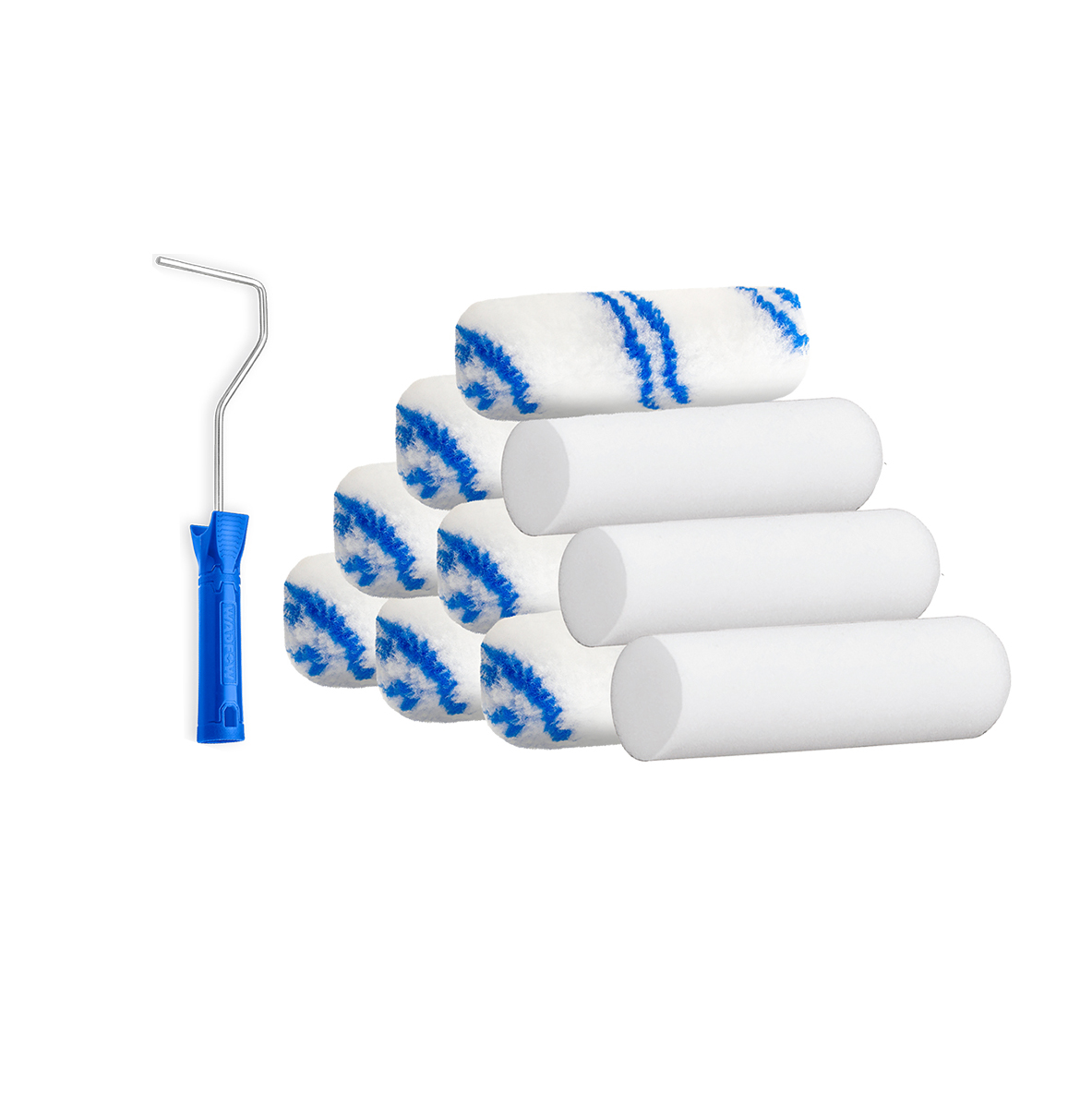 Cấu trúc 11 trong 1: Bộ sản phẩm bao gồm 7 con lăn xốp polyester 12mm, 3 con lăn xốp polyester và 1 khung lăn, cung cấp một giải pháp đa năng để bạn lựa chọn phù hợp với nhu cầu sơn của bạn.