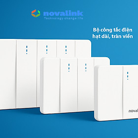 ✨Bộ công tắc 4 hạt dài tràn viền Novalink A6-05 - Công tắc điện 1 chiều cao cấp, màu trắng sứ, An Toàn, Bền Bỉ