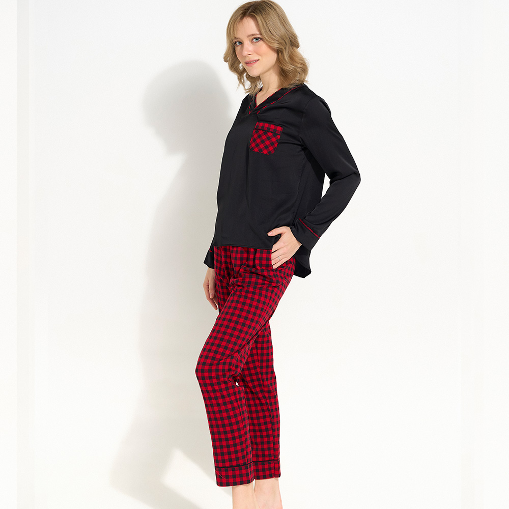 - Thương hiệu: HUONGTAM - Chất liệu vải: Nhẹ nhàng, thoáng mát, không nhăn, không phai màu - Hoa tiết:Sọc dọc-Caro- Hoa văn - SKU: PDT01 - Model : Pyjama - Kiểu đồ ngủ -