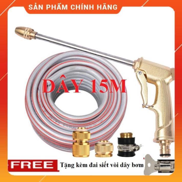 ✨️ Bộ dây vòi xịt nước rửa xe, tưới cây , tăng áp 3 lần, loại 15m 206701-3 đầu đồng,cút đồng,+ đai