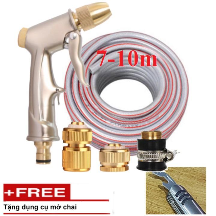 ✨Bộ dây vòi xịt nước rửa xe, tưới cây . tăng áp 3 lần, loại 7m, 10m 206701-1 đầu đồng, cút đồng, + tặng mở chai
