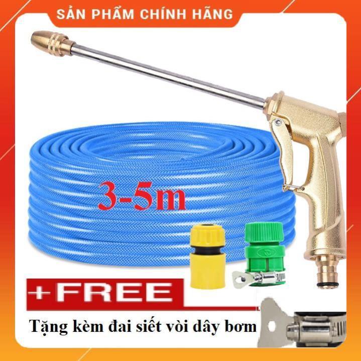 ✨Bộ dây vòi xịt nước ️ , tăng áp 3 lần, loại 3m, 5m 206701-3 đầu đồng,cút nối nhựa vàng+ đai