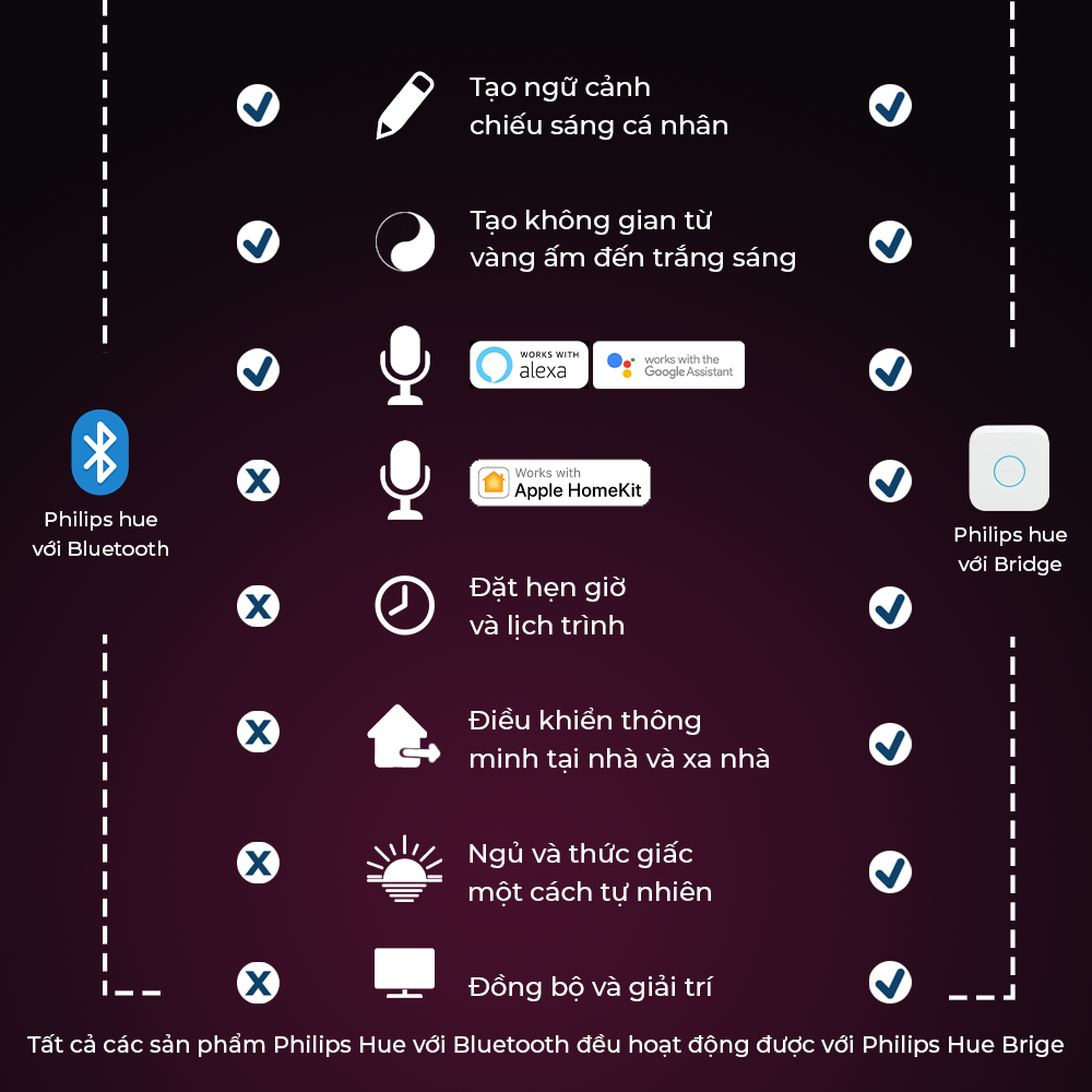 - Thay đổi linh hoạt cả về nhiệt độ màu ánh sáng (vàng ấm-trắng sáng) lẫn độ sáng (1%-100%) kèm theo nhiều ngữ cảnh thường dùng.