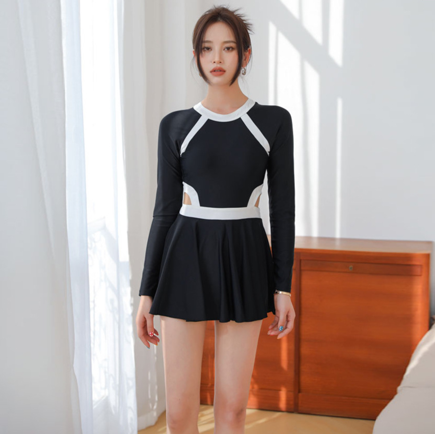 ✨Bộ đồ bơi bikini nữ kín đáo 1 mảnh đi tắm biển giấu bụng váy liền áo dài tay - B.42