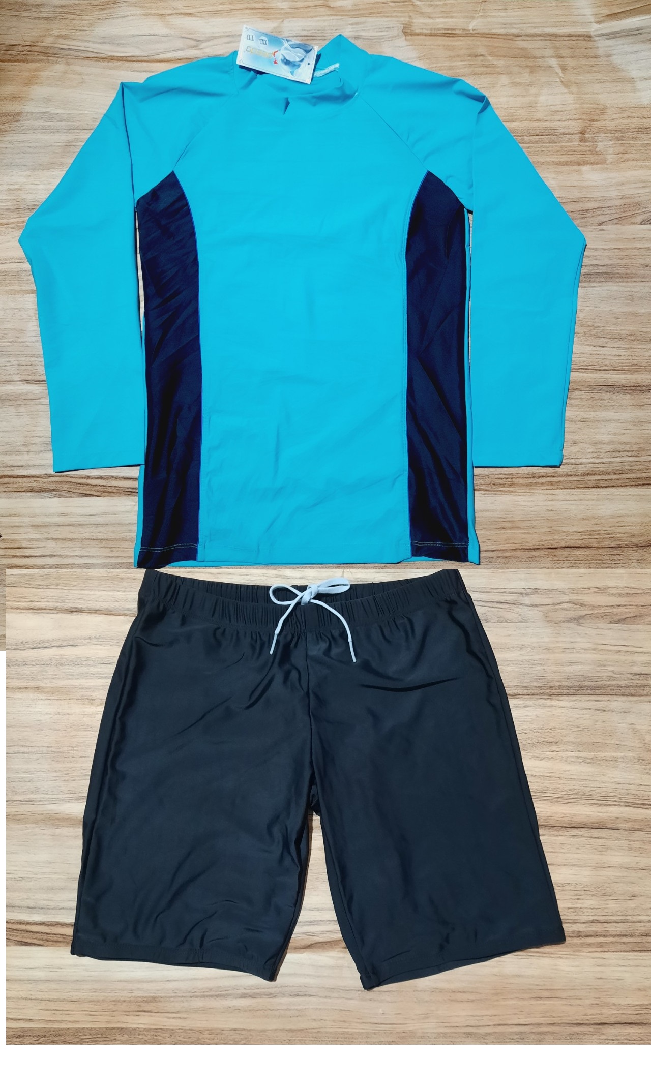 Hãy sẵn sàng cho mùa hè sôi động với bộ đồ bơi nam gồm áo thun bơi cộc tay và quần bơi 2 lớp đầy nam tính và tiện lợi BN032 của Đậu Đỏ bikini
