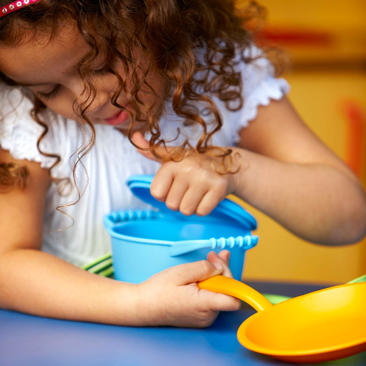 BỘ ĐỒ CHƠI ĐỒ DÙNG NẤU NƯỚNG & ĂN UỐNG GREEN TOYS CHO BÉ TỪ 2 TUỔI - Thương hiệu: Green Toys – Mỹ - Mã sản phẩm: DIN01R Các đầu bếp nhí có thể