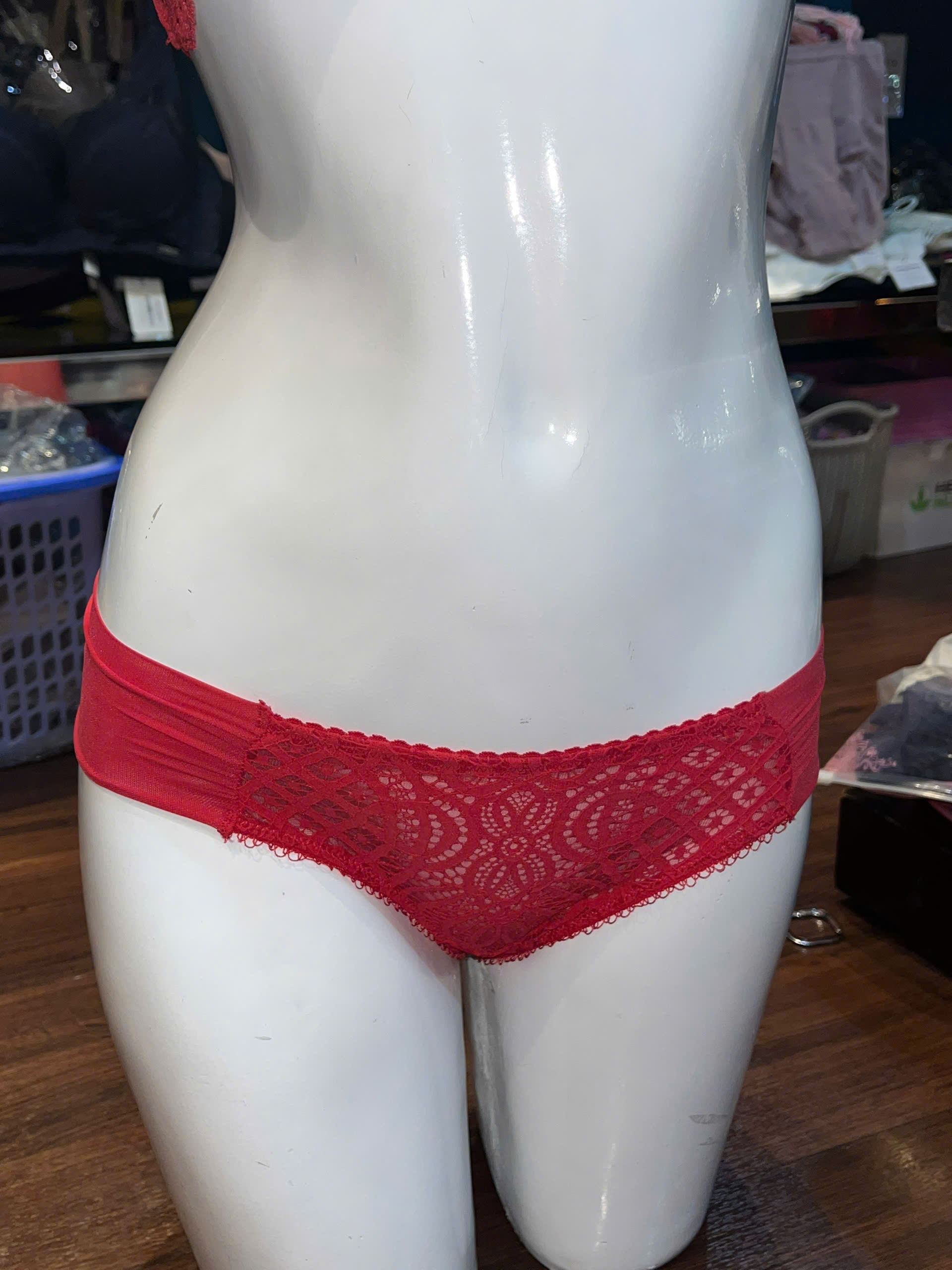 Màu sắc: Đỏ đô Chất liệu: Ren mềm BRA: Fresize và có tăng đơ điều chỉnh độ rộng, móc gài sau lưng QUẦN Chữ Y/Đùi: - S: V3 dưới 80cm - M: V3 từ 80-95cm
