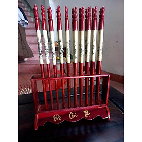 ✨Bộ Đũa thờ dáng cắm đứng bằng gỗ hương có kệ và đũa 10 đôi