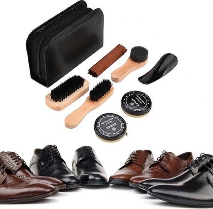 Bộ dụng cụ đánh giày 7 món kèm xi tiện lợi – Gồm đủ bộ si, cọ, nước lau giầy….xi đánh giày tiện lợi. Nhuộm và giữ màu làm sáng bóng giày dép – Bộ