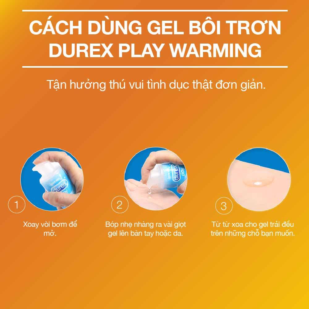 Gel Bôi Trơn Durex Play Warming Nóng Ấm Durex Play Warming là gel bôi trơn làm ấm được sản xuất trên dây chuyền tiên tiến của hãng Durex – Thái Lan. Gel bôi trơn Durex