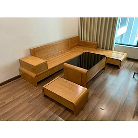 SOFA GÓC L CHO PHÒNG KHÁCH HIỆN ĐẠI 16M2 | Sofa Gỗ Sồi Góc L | Hoài Anh Sofa