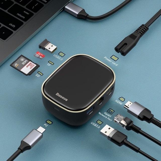 ✨ Bộ Hub kiêm sạc 60W, mở rộng 7 in 1 Baseus (USB 3.0*2 + HDMI + SD/TF + RJ45 , 60W, 5Gbps)- Hàng chính hãng.