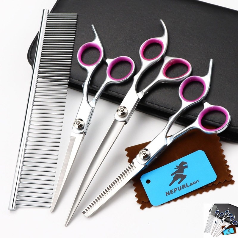 Kéo cắt lông chó, Bộ kéo spa 3 kéo + 1 lược cắt tỉa lông cho chó mèo chuyên dụng