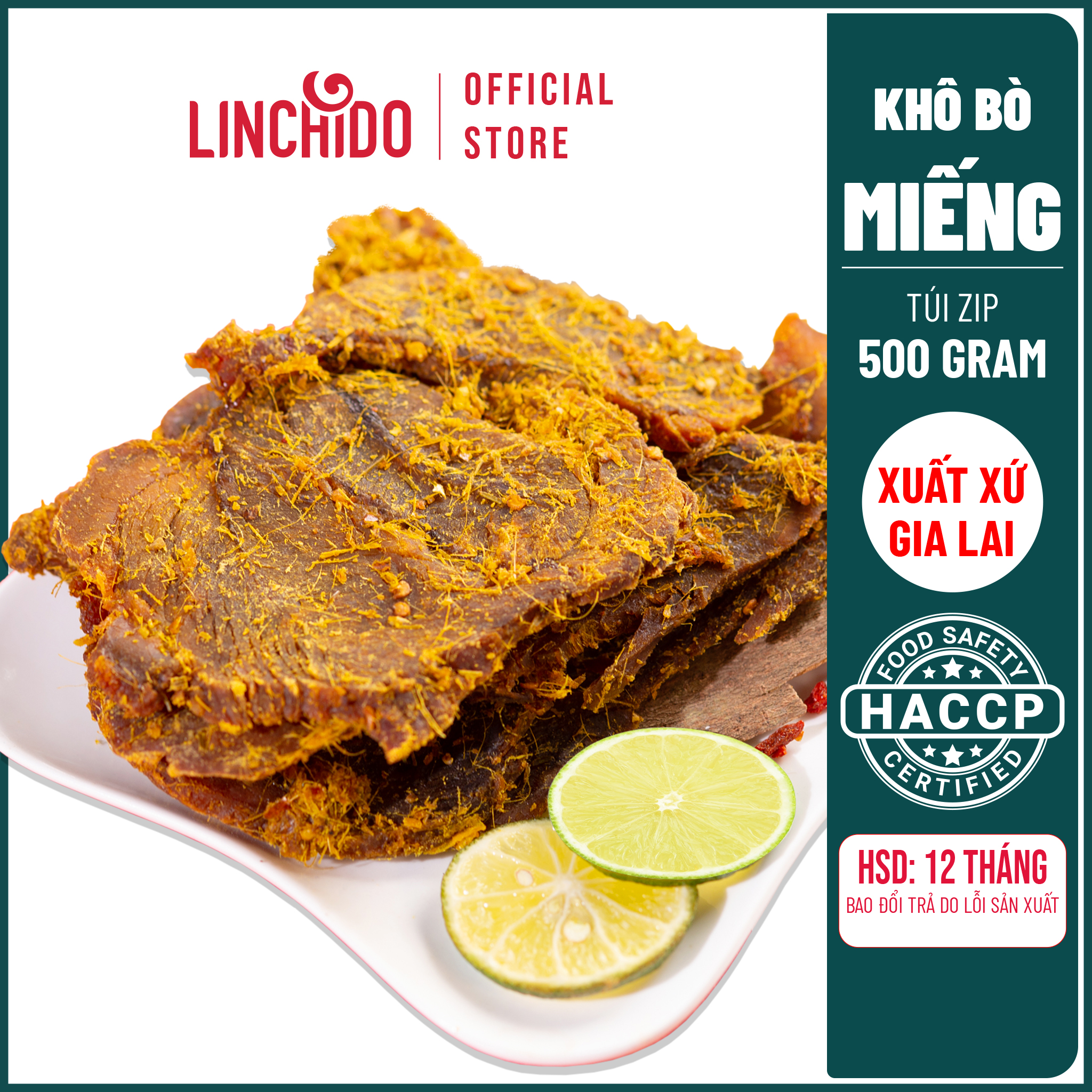 KHÔ BÒ MIẾNG MỀM DAI Xuất xứ: Việt Nam. Hạn sử dụng: In trên bao bì Quy cách: HỘP 500G Thành phần: