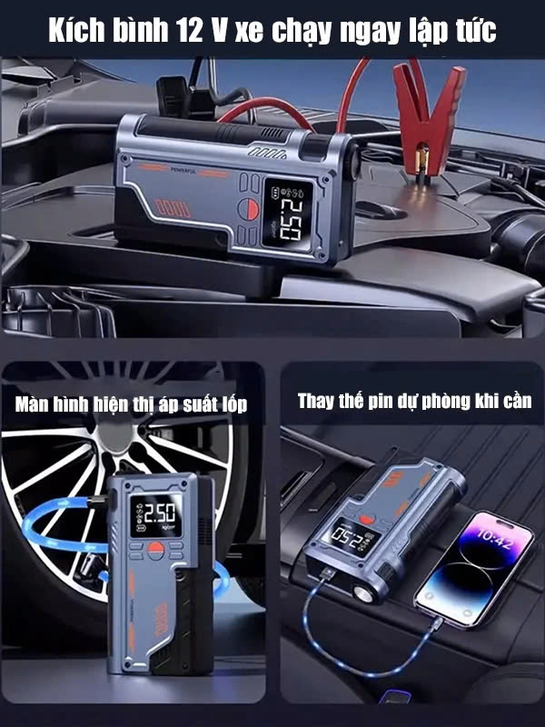 Kích bình điện 12v cứu hộ xe ô tô đề không nổ kiêm pin sạc dự phòng High Power