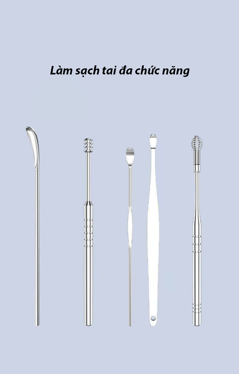 - 3 cây hình muỗng lấy ráy tai gọn nhẹ và 1 chổi vẹ sinh các dụng cụ. Bộ dụng cụ chất liệu thép không rỉ cao cấp an toàn và phù hợp với tát cả mọi người . Kích thước chi tiết và công dụng của sản phẩm Khác với tăm bông có thể đẩy ráy tai vào tai, dụng cụ tẩy ráy tai hình muỗng có thể loại bỏ ráy tai tích tụ hiệu quả. Các tay cầm được thiết kế cho một thiết kế an toàn, chống trượt. Ngoại hình thanh lịch, dễ điều khiển và an toàn Thiết kế hộp đựng nên có thể di chuyển dễ dàng và dễ bảo quản