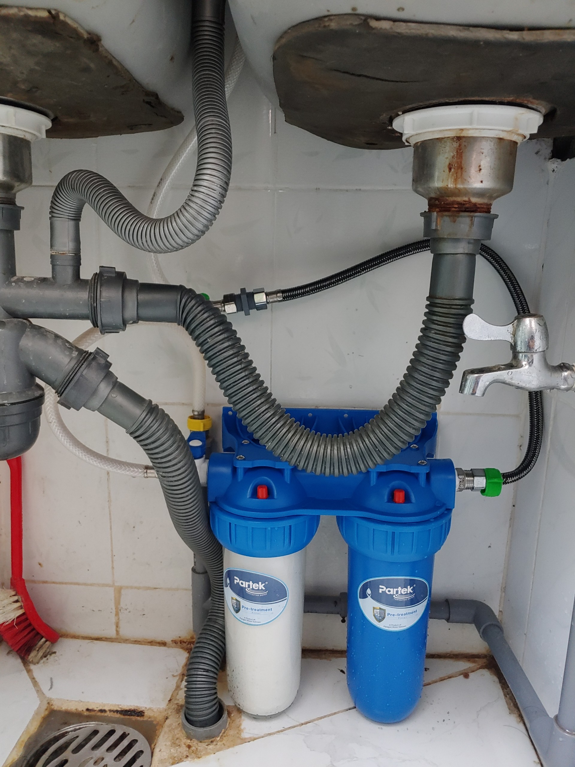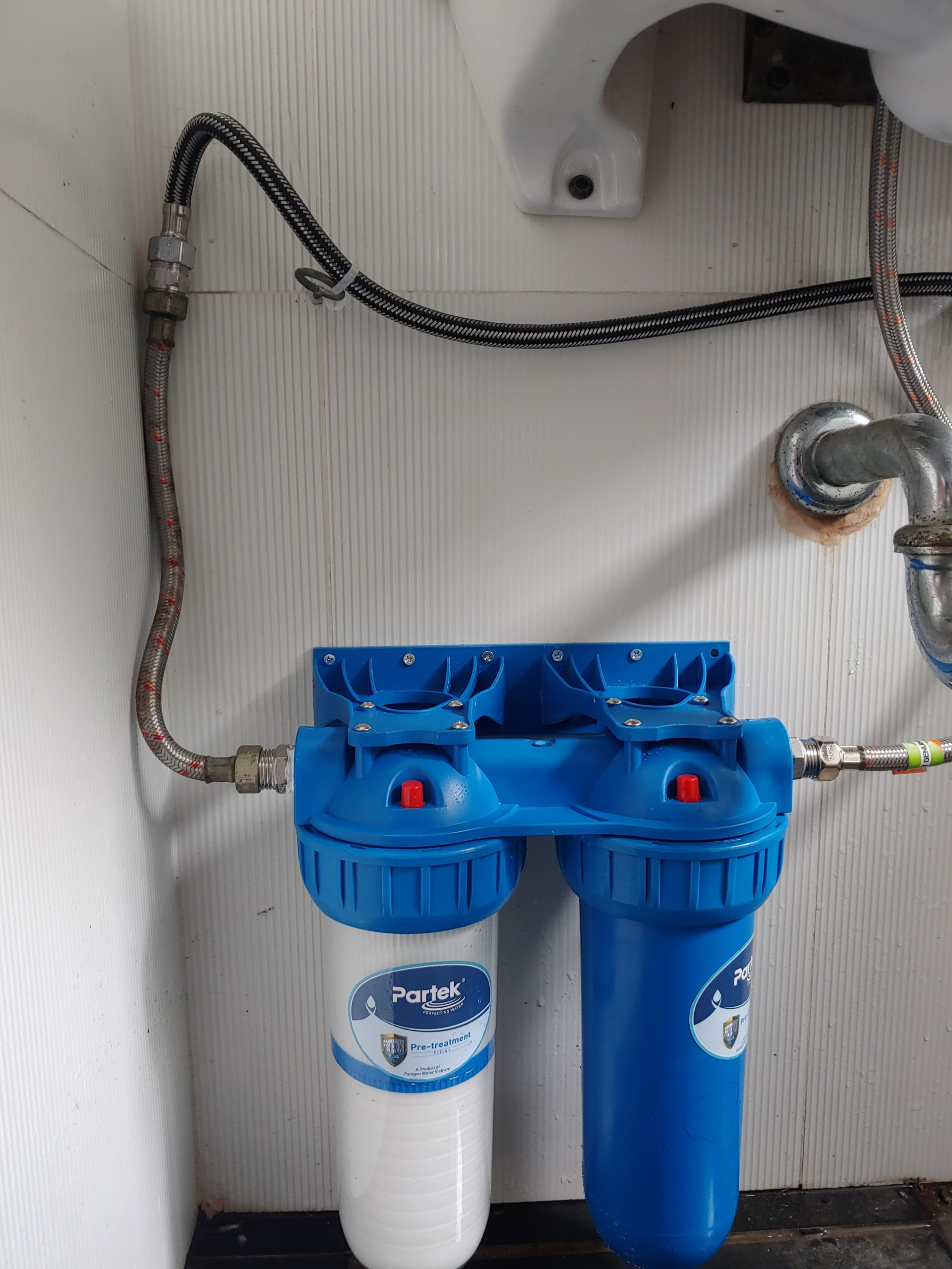 Bộ lọc nước sinh hoạt nhiễm phèn Partek series P1020-2PRS-H hàng chính hãng loại bỏ cặn bẩn sơ bộ, hấp thụ màu, mùi, hóa chất độc hại hay nâng pH cho nước nhiễm phèn