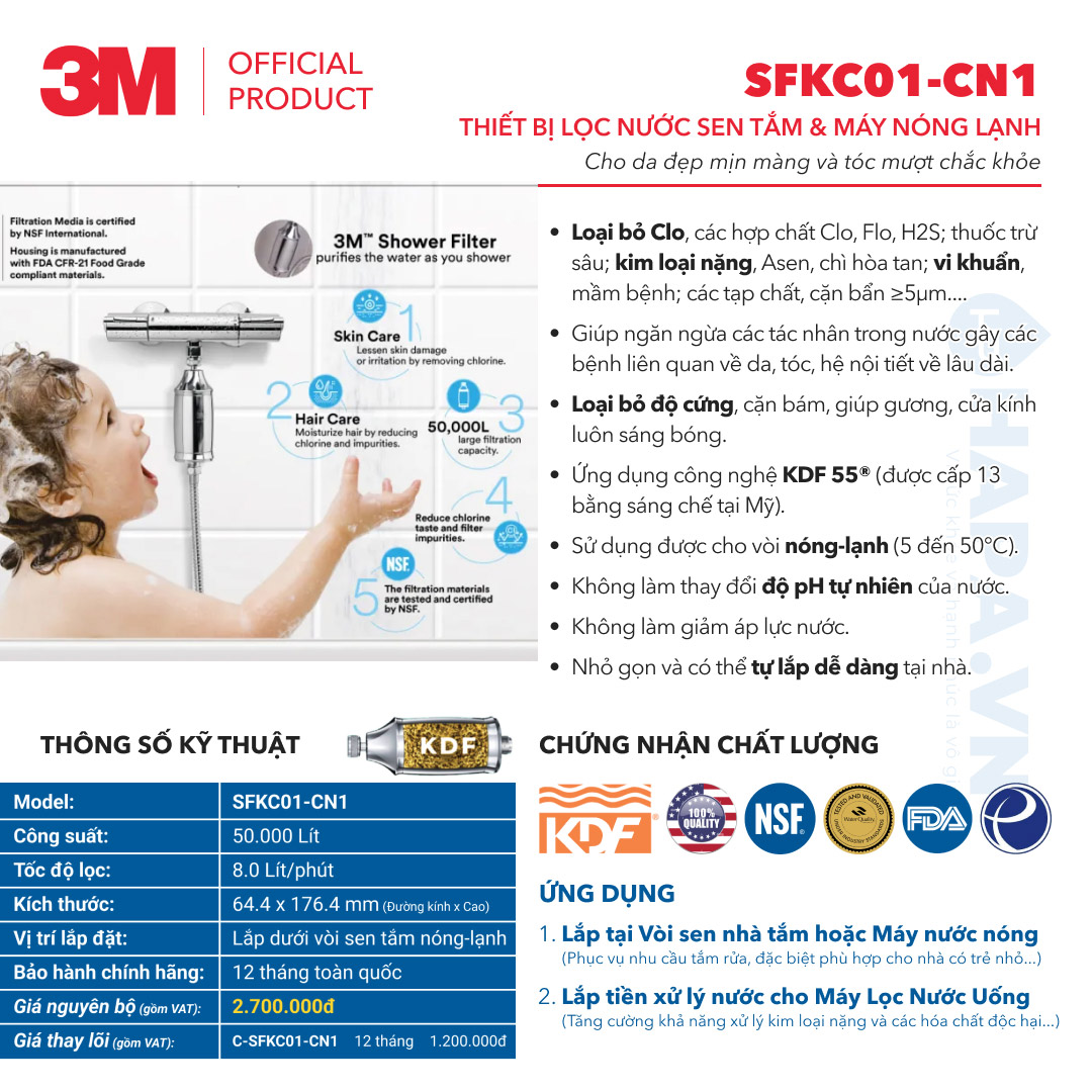 Mua tại TiktokBộ Lọc Nước Vòi Sen Tắm 3M SFKC01-CN1 / 3M HSF-IS - Hàng Chính Hãng Nhập Khẩu DA ĐẸP MỊN MÀNG & MÁI TÓC CHẮC KHỎE CHO CẢ GIA ĐÌNH