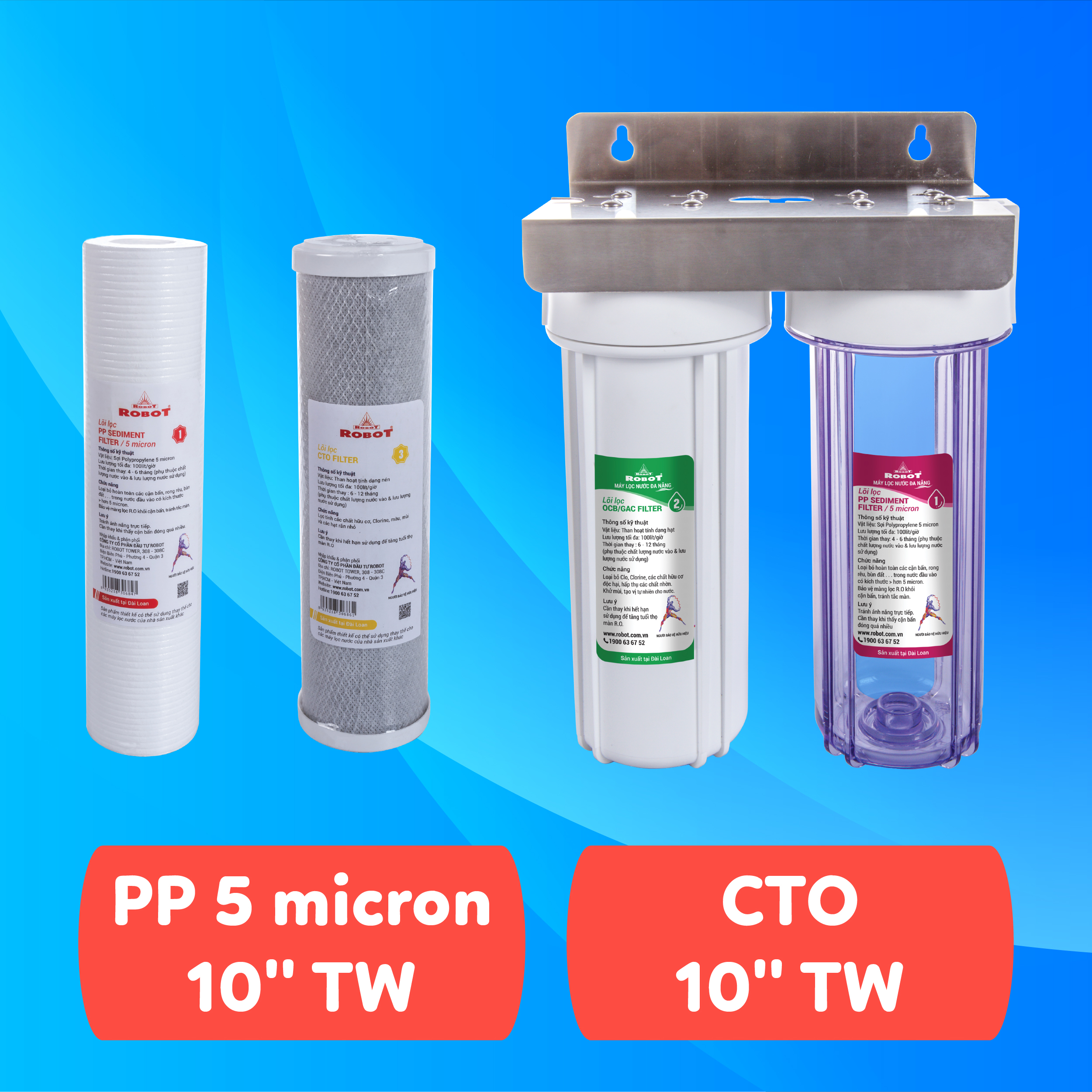 - Lõi lọc (Taiwan): PP Sediment 5 micron + CTO.
