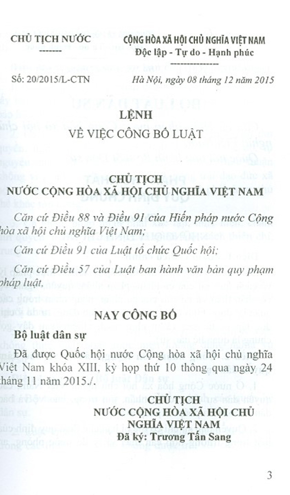 ✨Bộ Luật Dân Sự Nước Cộng Hòa Xã Hội Chủ Nghĩa Việt Nam (Có Hiệu Lực Thi Hành Từ Ngày 01/01/2017)