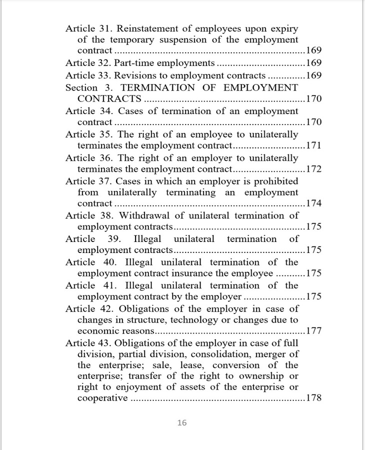 Bộ luật Lao động được Quốc hội khóa XIV, kỳ họp thứ 8 thông qua ngày 20/11/2019, có hiệu lực thi hành từ ngày 01/01/2021. Toàn văn Bộ luật Lao động gồm 17 chương, 220