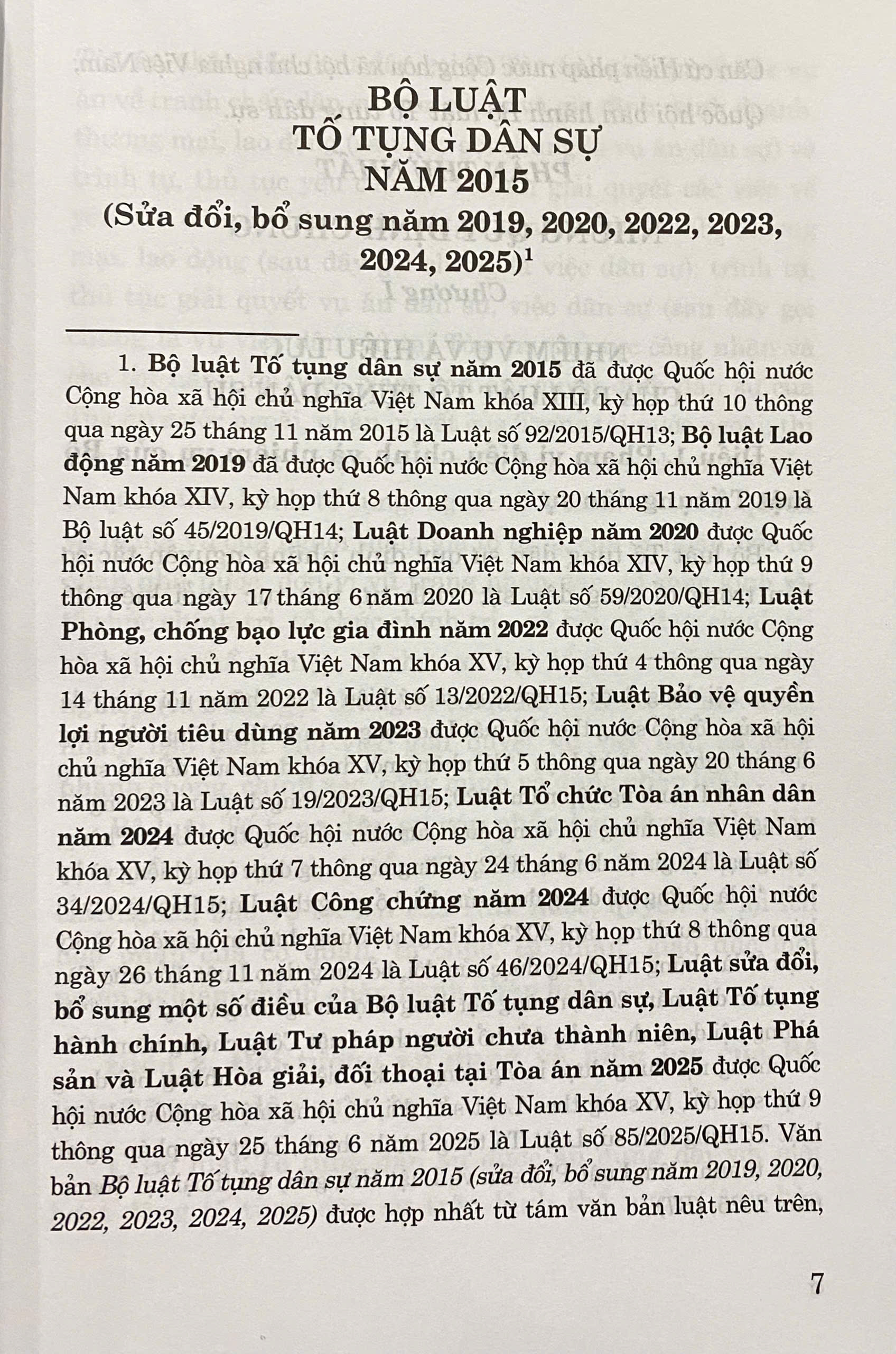 Bộ luật Tố tụng dân sự năm 2015 (Sửa đổi, bổ sung năm 2019, 2020, 2022, 2023, 2024, 2025) Khổ sách 14.5 x 20.5 Năm XB 2025