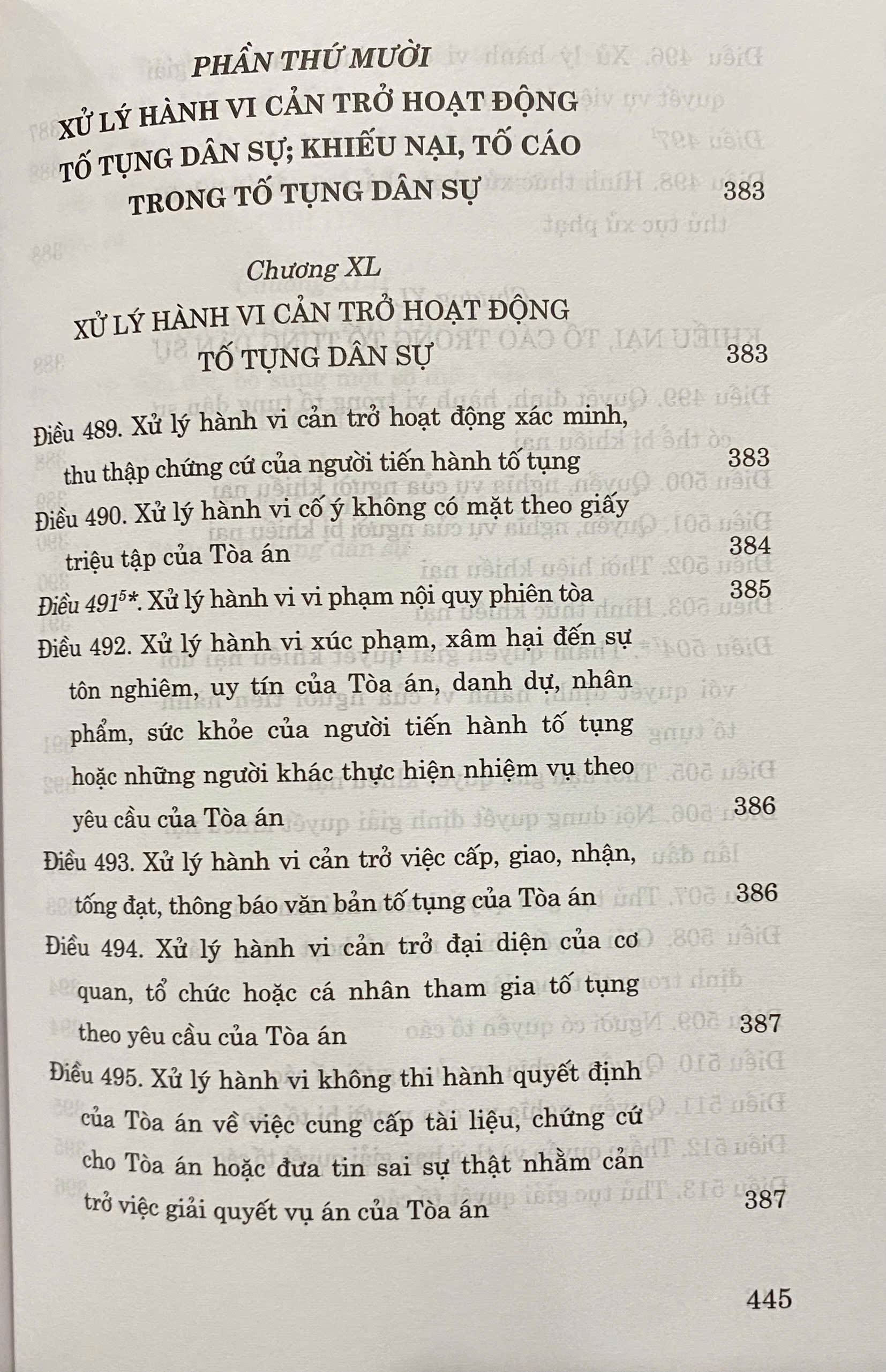 Cuốn sách là văn bản nhất thể hóa của Bộ luật Tố tụng Dân sự năm 2015 với nội dung sửa đổi, bổ sung Bộ luật Tố tụng Dân sự năm 2015 của Bộ luật