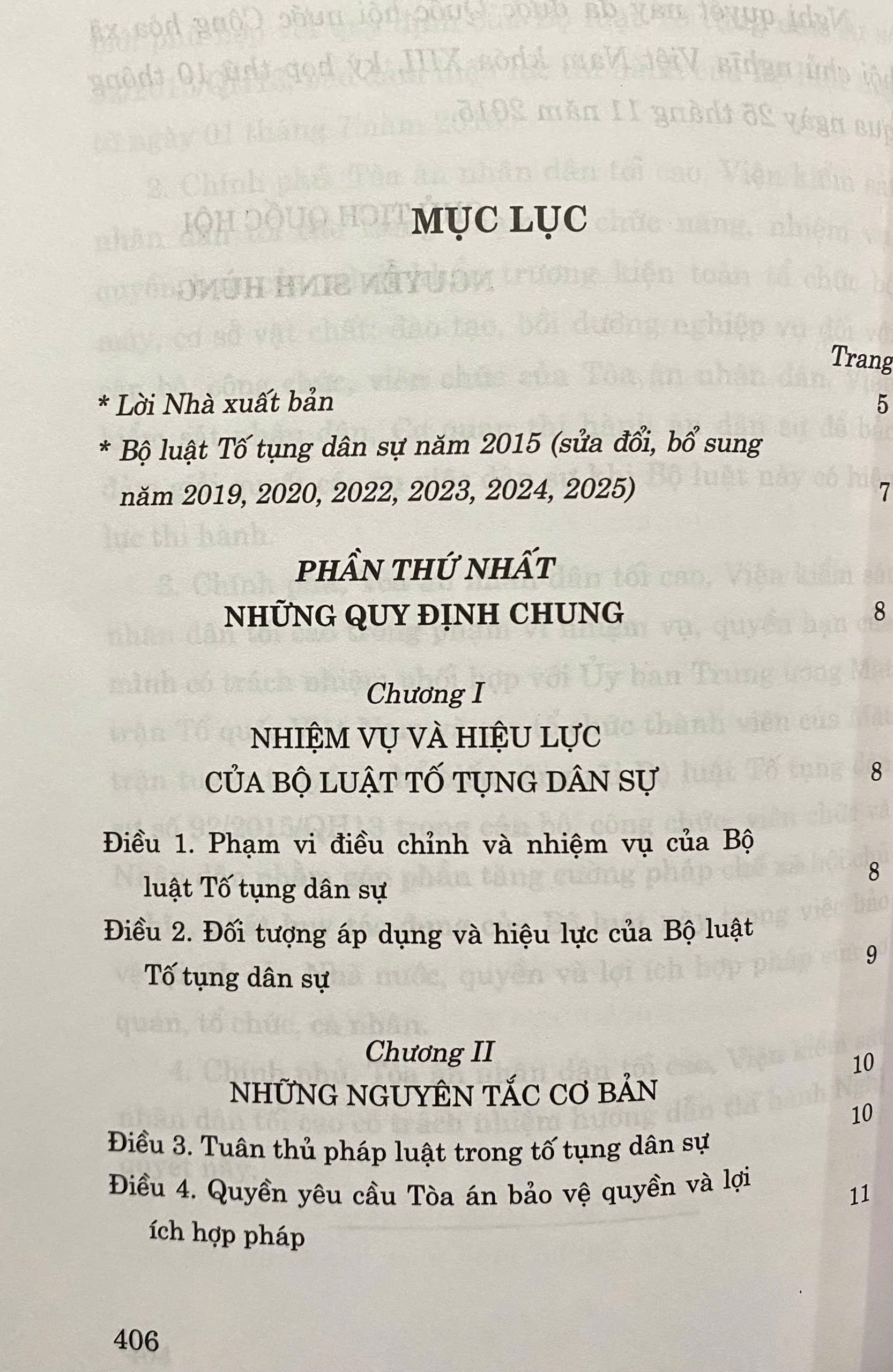 Để thuận tiện cho bạn đọc trong việc tìm hiểu và áp dụng Bộ luật Tố tụng dân sự, Nhà xuất bản Chính trị quốc gia Sự thật xuất bản cuốn sách Bộ luật Tố tụng dân sự năm 2015 (sửa đổi, bổ sung năm 2019, 2020, 2022, 2023, 2024, 2025). Nội dung cuốn sách là văn bản hợp nhất Bộ luật Tố tụng dân sự năm 2015 với nội dung sửa đổi, bổ sung Bộ luật Tố tụng dân sự năm 2015 của các văn bản Luật nêu trên.