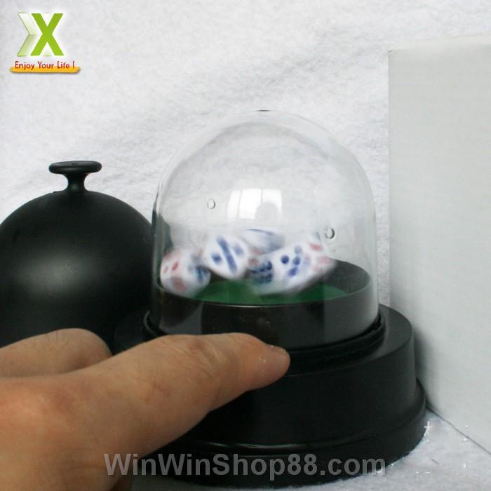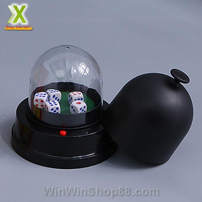 - Máy lắc xí ngầu được thiết kế với đĩa lắc tự động quay, sử dụng hoàn toàn bằng điện với 2 pin AA. Chỉ cần giữ nút, các hạt xúc xắc sẽ được lắc đều một cách tự nhiên. Để đảm bảo tính công bằng và tỉ lệ cho ra kết quả ngẫu nhiên cho người chơi.