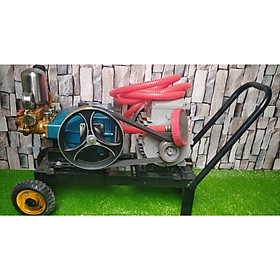 -Máy có kiểu dáng xe đẩy với 2 bánh xe lớn, tay cầm thuận tiện giúp di chuyển dễ dàng trong mọi địa hình.