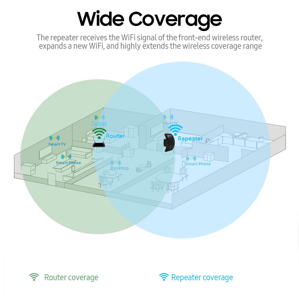 Features:The repeater receives the WiFi signal of the front-end wireless router, expands a new WiFi, and highly extends the wireless coverage range, so as to solve the problem of incomplete WiFi sign...