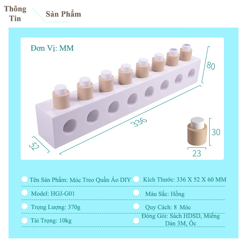 Bộ Móc Treo Quần Áo Nam Châm Thông Minh DIY Thông Tin Sản Phẩm:             Kích Thước: 336 x 52 x 60mm             Trọng Lượng: 370g             Quy Cách: 8 móc/mặt             Sản Phẩm Bao Gồm: Xách Hướng Dẫn, Miếng Dán 3M, Ốc Mô Tả Sản Phẩm: Đây là sản phẩm mang tính sáng tạo giúp cho các bạn có thể treo móc độ một cách tiện lợi. Có keo dính 3M để dán lên tường và 2 lỗ bắt vít chắc chắn. Có 2 móc gắn nam châm để treo chìa khóa vô cùng tiện lợi và nhanh chóng. Có thể tùy chỉnh vị trí, độ cao của các móc gắn quần áo, túi xách theo ý thích. Chịu được sức nặng tối đa 10kg.           Sản phẩm này là tài sản cá nhân được bán bởi Nhà Bán Hàng Cá Nhân và không thuộc đối tượng phải chịu thuế GTGT. Do đó hoá đơn VAT không được cung cấp trong trường hợp này.