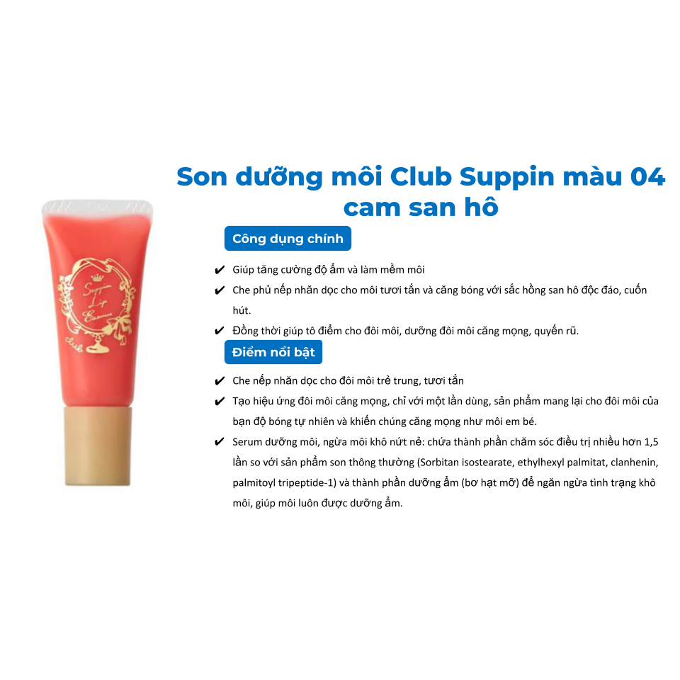 - Son dưỡng môi Club Suppin màu 04 cam san hô 4901416177958