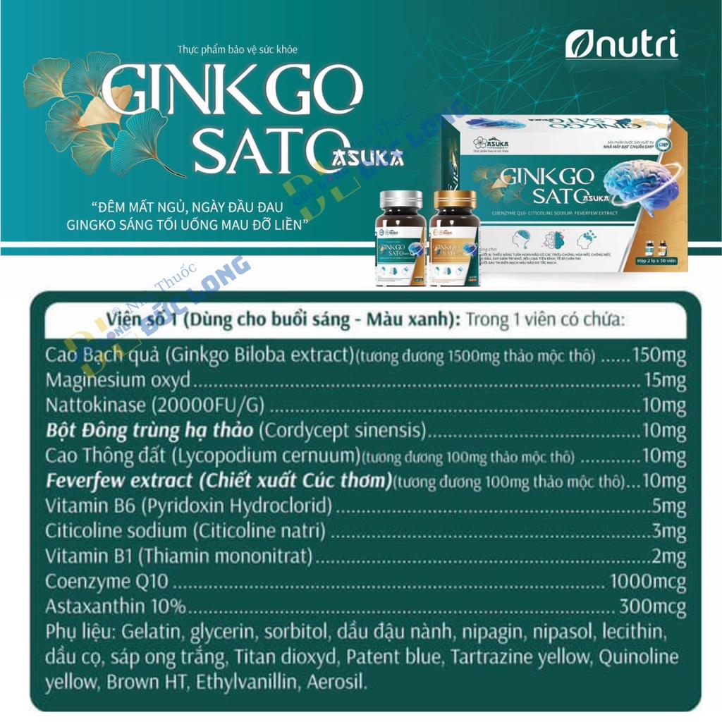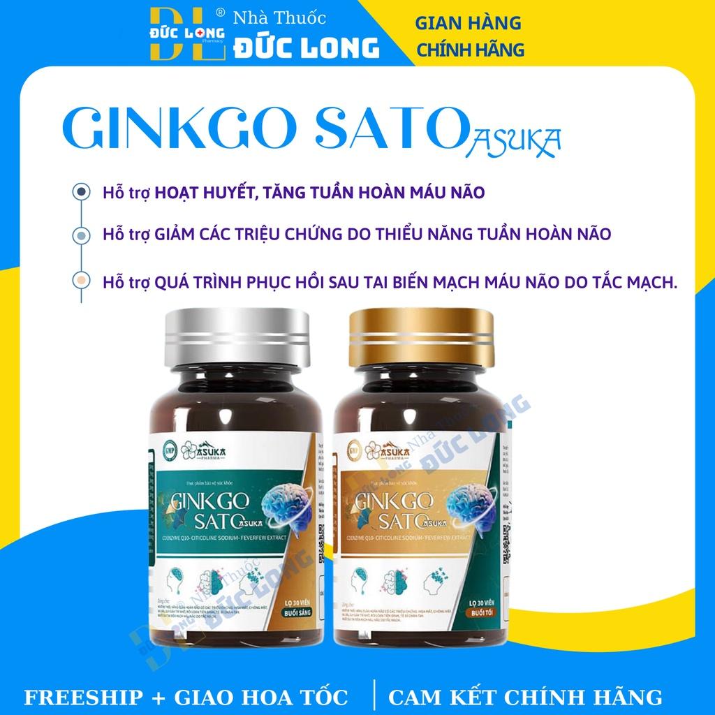 Bổ não Ginkgosato asuka pharma, viên uống bổ não, tuần hoàn máu não, Hộp 2 lọ x 30 viên – Đức Long