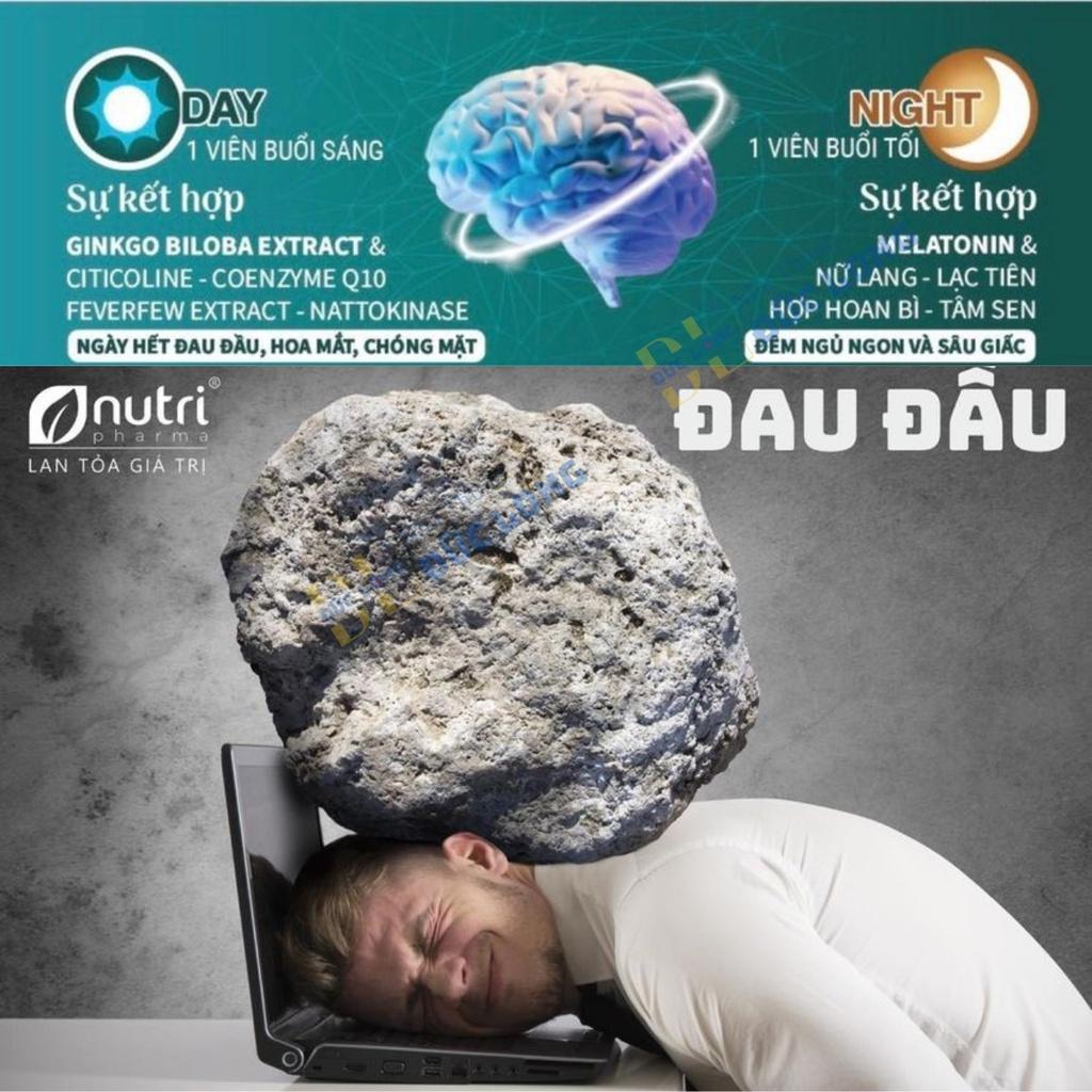 Thành phần: Ginkgo Biloba: 240mg Cafein: 5mg Magnesium: 60mg Vitamin B1: 6mg Vitamin B6: 6mg Công dụng: giúp tăng cường trí nhớ, giúp trí não minh mẫn, nhanh nhẹn, cải thiện triệu chứng liên quan