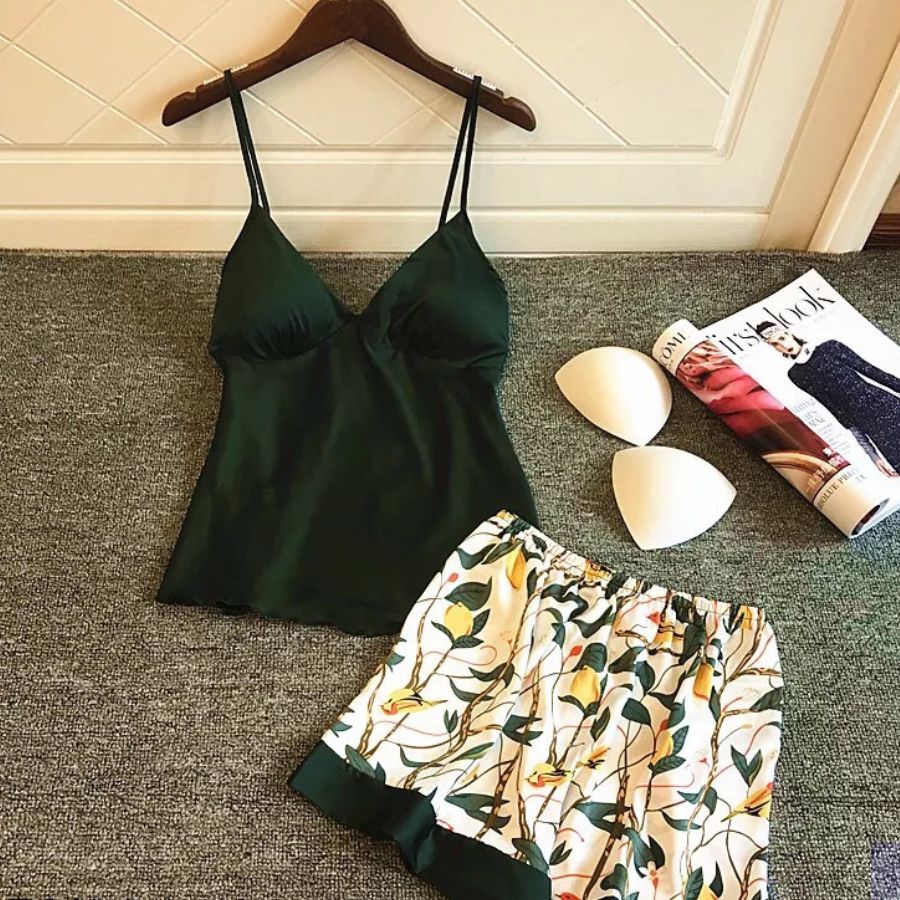✨Bộ ngủ lụa 2 dây quần hoa - BN084