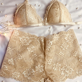 Bộ đồ lót ren bralette nâu không gọng không mút