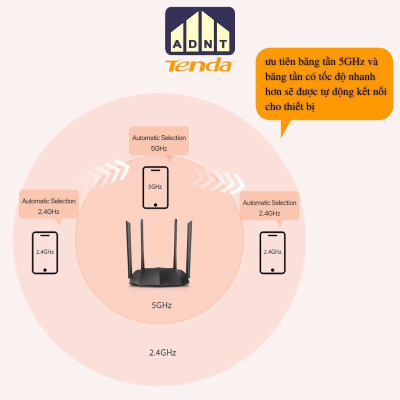 -Tính năng thông minh gộp 2 băng tần 2.4GHz và 5GHz với cùng 1 tên WiFi ; ưu tiên băng tần 5GHz và băng tần có tốc độ nhanh hơn sẽ được hệ thống tự động kết nối cho thiết bị của bạn.