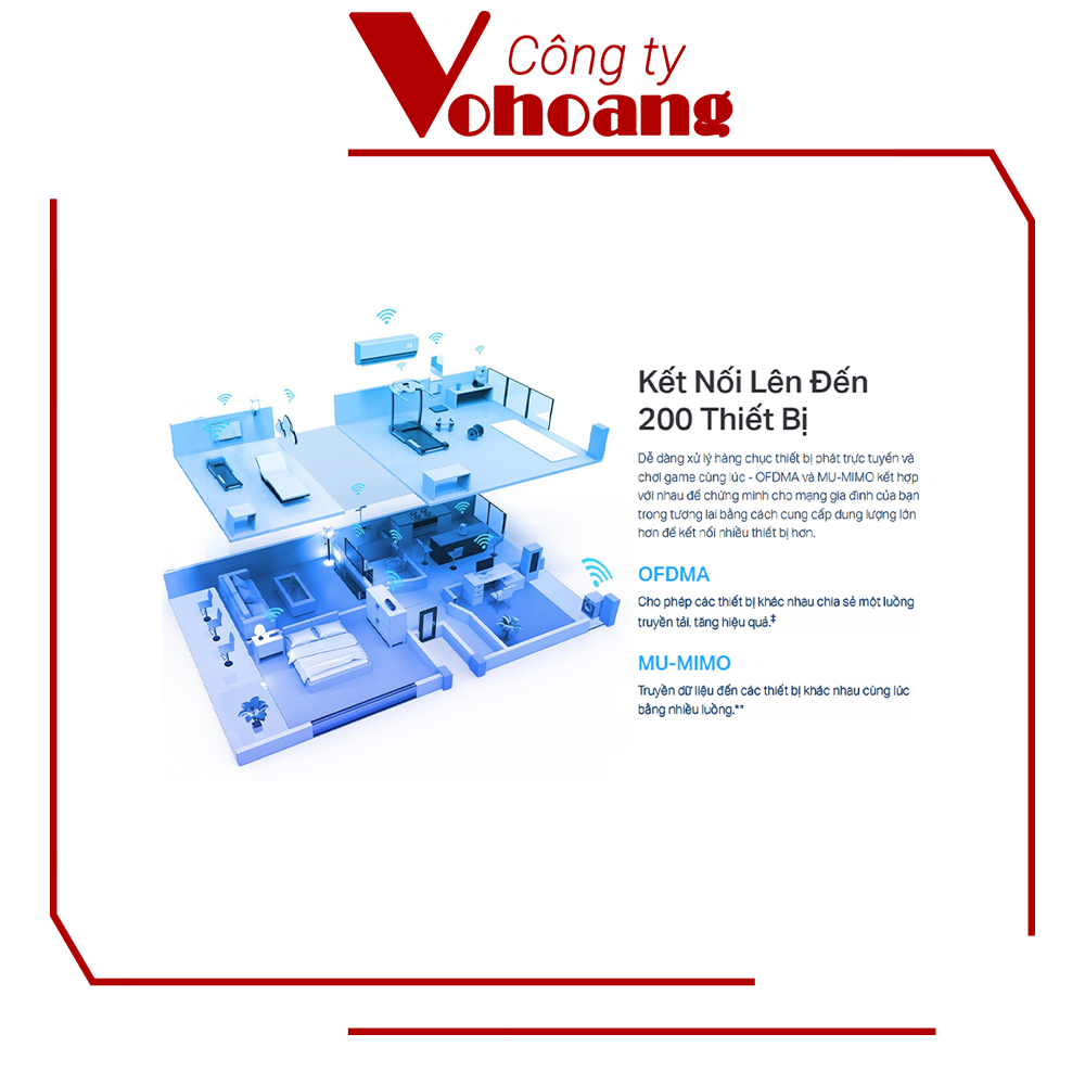 • Kết Nối Lên Đến 200 Thiết Bị – Hỗ trợ MU-MIMO và OFDMA để giảm tắc nghẽn và tăng gấp 4 lần thông lượng trung bình.