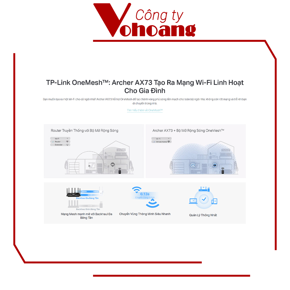 Router 3200Mbps Wi-Fi 6 Dual-band Gigabit Mesh: - Băng thông lớn; CPU lõi kép 4 luồng, hỗ trợ NAT - Truy cập đồng thời 48 người dùng (đề xuất) truy cập Wifi hai dải băng