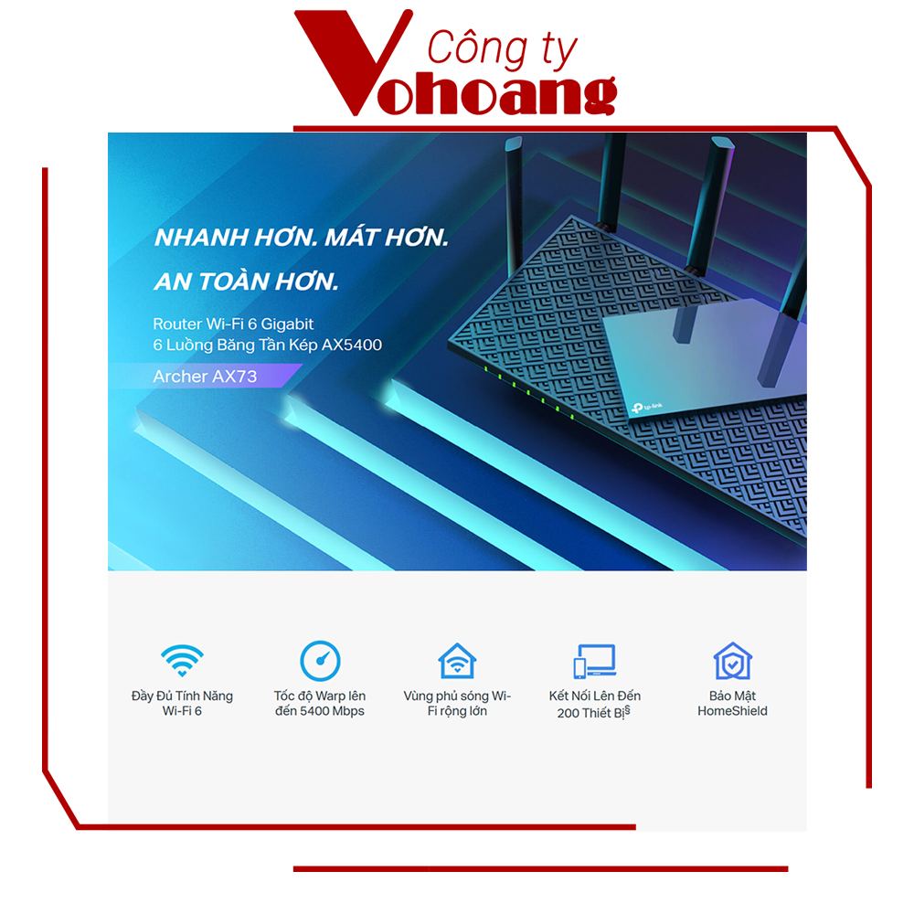 Bộ Phát Wifi TP-Link Archer AX73 Băng Tần Kép AX5400 Wifi 6 - Hàng Chính Hãng WiFi Gigabit cho Phát Trực Tuyến 8K – WiFi 5400 Mbps cho duyệt web, phát trực tuyến và tải về nhanh hơn cùng một lúc.Tí...