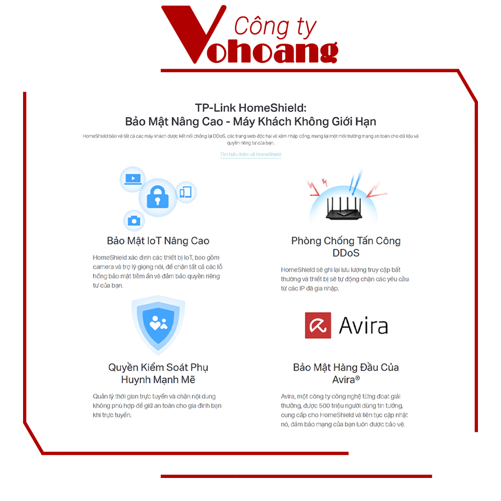 • HomeShield – Dịch vụ bảo mật cao cấp TP-Link giữ cho mạng nhà bạn ăn toàn với các tính năng tiên tiến để bảo vệ mạng và IoT.