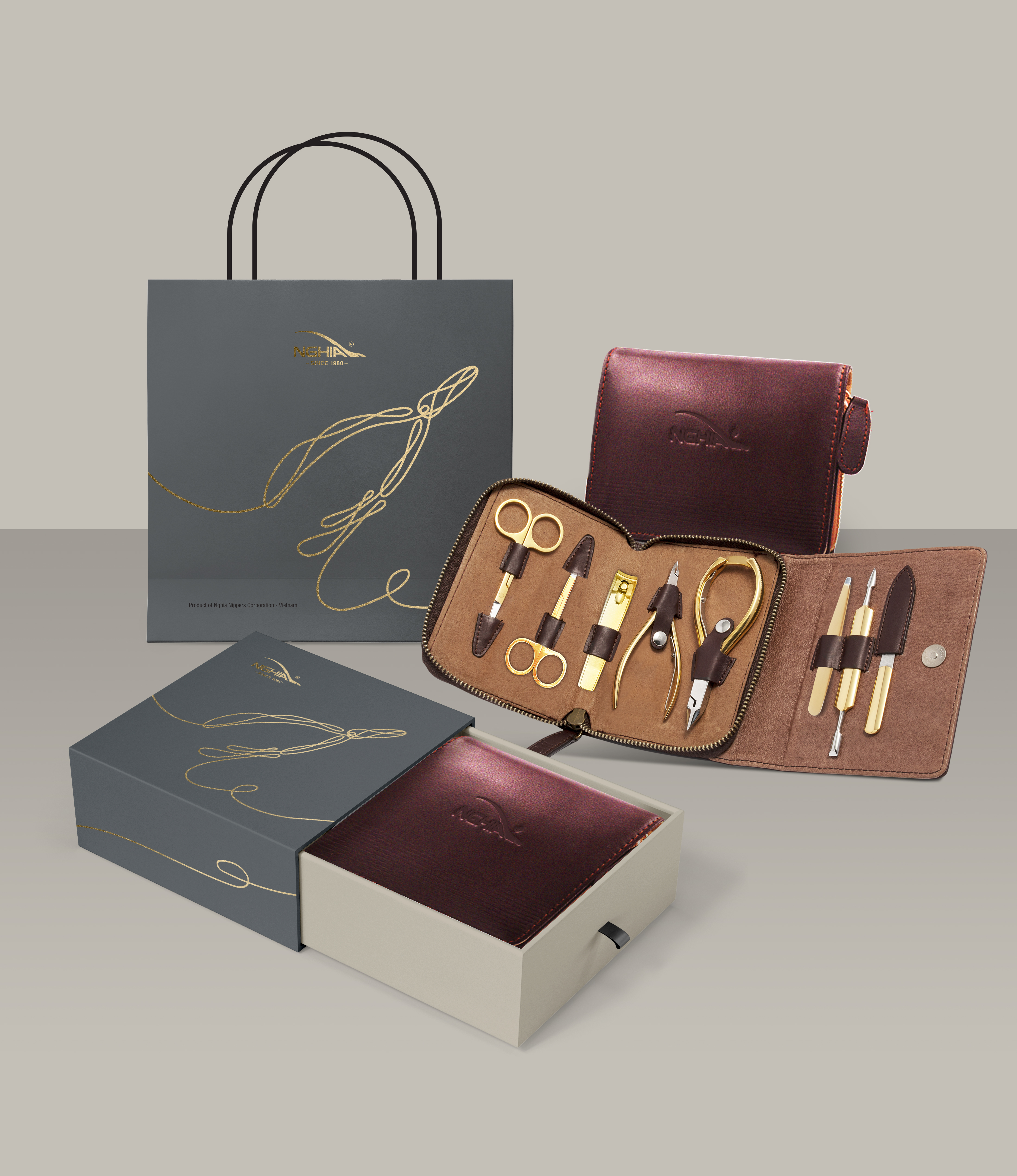Với hơn 40 năm kinh nghiệm trong lĩnh vực sản xuất kềm cắt da và kềm cắt móng, đội ngũ chuyên gia và các kỹ thuật viên lành nghề của chúng tôi đã và đang tạo ra các sản phẩm kềm cao cấp dưới thương hiệu Nghĩa và những nhãn hiệu khác như OMI, EVO Bộ sản phẩm quà tặng cao cấp GS.01 CC là sự kết hợp sản phẩm của 2 nhãn hiệu OMI và Nghĩa sản xuất theo tiêu chuẩn Nghĩa đảm bảo chất lượng các sản phẩm cắt bén, êm, bền và các sản phẩm được mạ vàng 24K. Các sản phẩm được đặt/đựng trong bóp nhỏ gọn không chỉ giúp bảo quản sản phẩm mà còn có thể luôn mang theo bên mình khi đi làm, đi du lịch. Bộ sản phẩm quà tặng cao cấp GS.01 CC thích hợp làm quà tặng cho đối tác kinh doanh VIP, khách hàng VIP. Thiết kếBộ sản phẩm bao gồm: